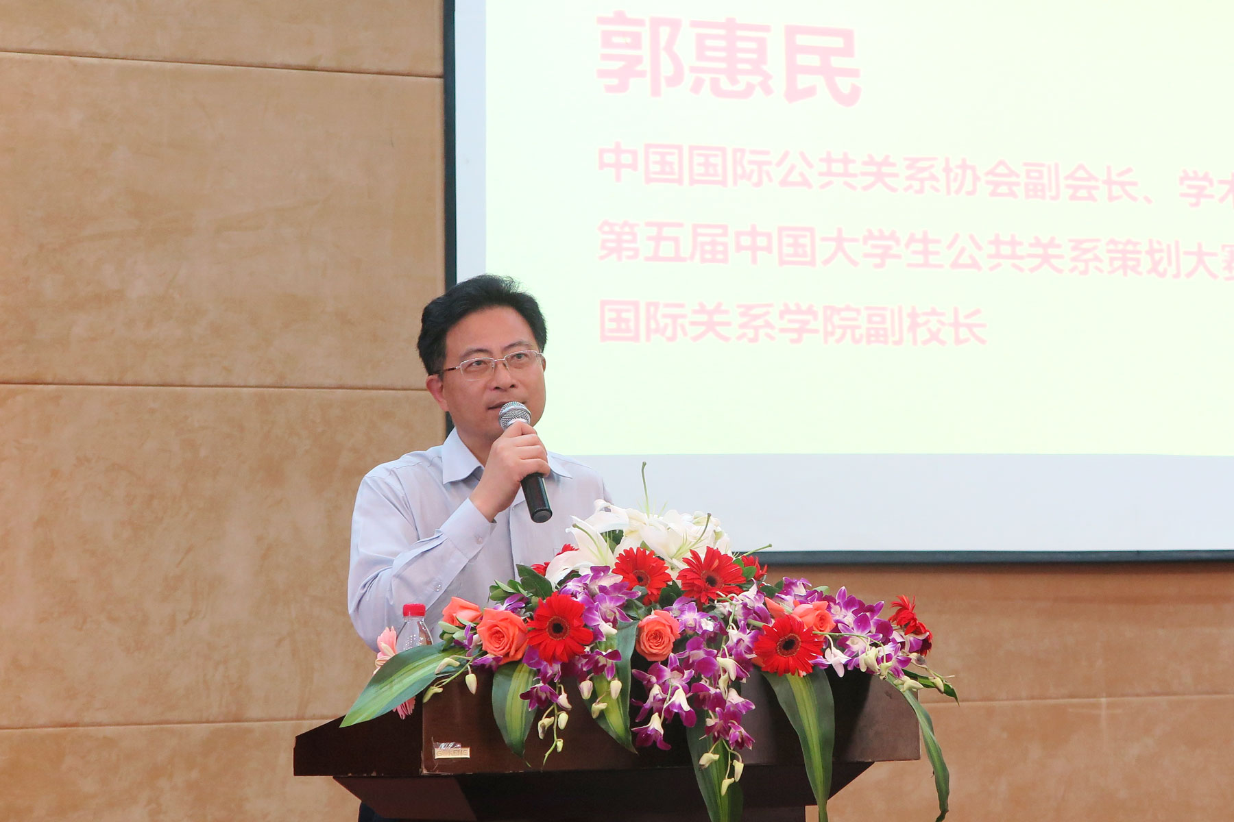 中国国际公共关系协会副会长、学术工作委员会主任委员、第五届中国大学生公共关系策划大赛技术指导、国际关系学院副校长 郭惠民 致辞