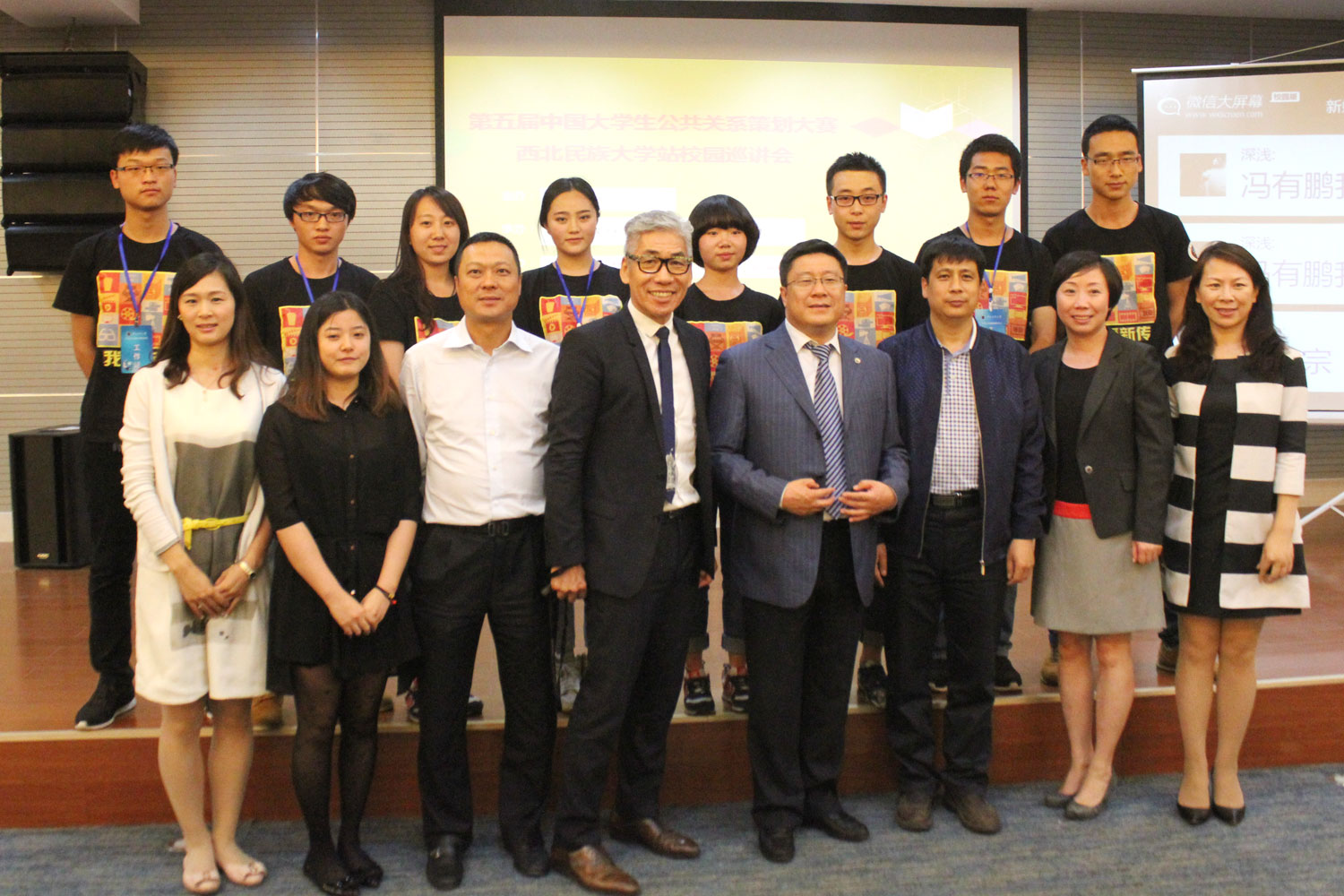 2015年5月28日下午14时整,由中国国际公共关系协会主办的,西北民族大学大学生实践创新中心公共关系与策划工作室和新闻传播学院联合承办的第五届中国大学生公共关系策划大赛西北民族大学站巡讲,在西北民族大学图书馆一层多功能厅成功举行。西北民族大学大学生实践创新中心主任果建华,中国国际公共关系协会常务副会长兼秘书长、第五届中国大学生公共关系策划大赛主任赵大力出席此次巡讲会并致辞。中国国际公共关系协会副秘书长、第五届中国大学生公共关系策划大赛执行主任章兰以及西北民族大学公共关系相关专业老师也出席了此次巡讲。