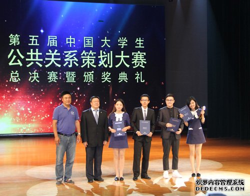 9月25日,第五届中国大学生公共关系策划大赛总决赛暨颁奖典礼在浙江传媒学院隆重举行。16支高校团队经过激烈的角逐,分别斩获金、银、铜奖。荣获金奖的3支高校团队是:中山大学“Kalevala”团队、中国人民大学“RUC5sisters”团队、厦门大学“厦门大学荔枝派”团队。荣获银奖的5支高校团队是:华中科技大学“红树林•π”团队、华东师范大学“零点四一”团队、北京师范大学-香港浸会大学联合国际学院“北回归线”团队、中山大学“Amélie”团队、华东师范大学“B221”团队。荣获铜奖的8支高校团队是:西南大学“青鸟”团队、国际关系学院“5A”团队、中国人民大学“桃木剑”团队、中山大学南方学院“YES”团队、福建工程学院“I`m Baymax”团队、西北民族大学“正青春”团队、北京邮电大学“We Five”团队、浙江传媒学院“Open”团队。作为特邀团队的中国人民公安大学也带来精彩展示,并荣获了特别奖。